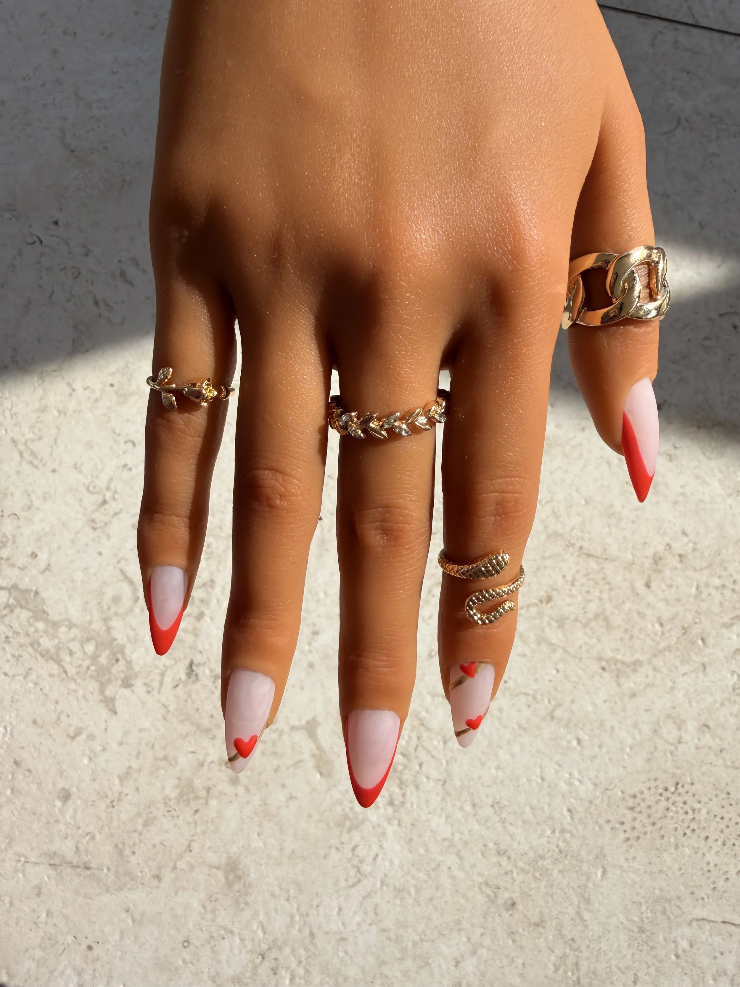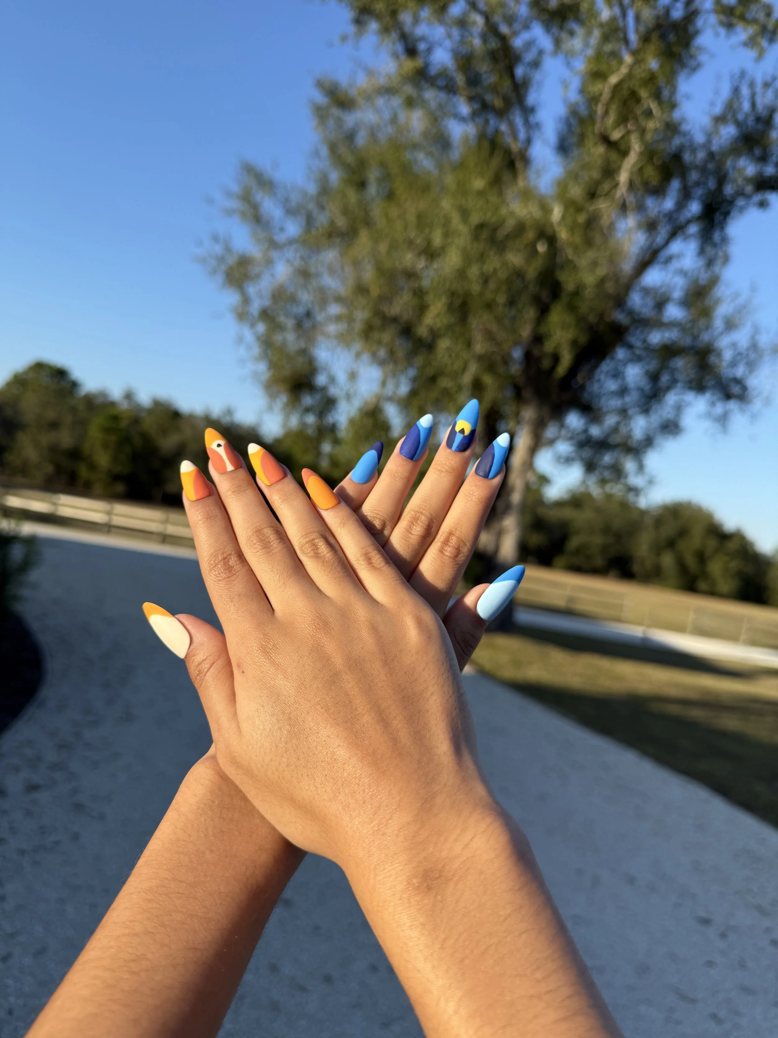 Our handmade press-on nails are reusable, salon-quality sets designed for easy at-home application. Each set comes with a mini manicure kit so you can apply, wear, and remove safely.